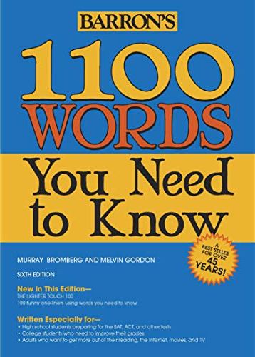 All new words for students to learn are placed in the context of sentences that have been selected from well-known novels, plays, poems, newspaper editorials, and TV broadcasts. For optimal ease and enjoyment in learning, the authors recommend 15-minute sessions with this book. Over the years, thousands of students preparing for the SAT and ACT have relied on previous editions of 1100 Words You Need to Know as an ideal way to strengthen their word power. A new feature in the sixth edition is The Lighter Touch 100, a collection of 100 funny one-liners which use words from the book that you need to know.