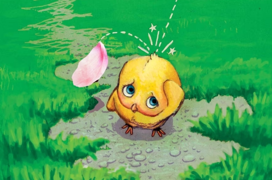 "Squawk! Squawk!” cried Chicken Little, frightened by the petal’s landing.
