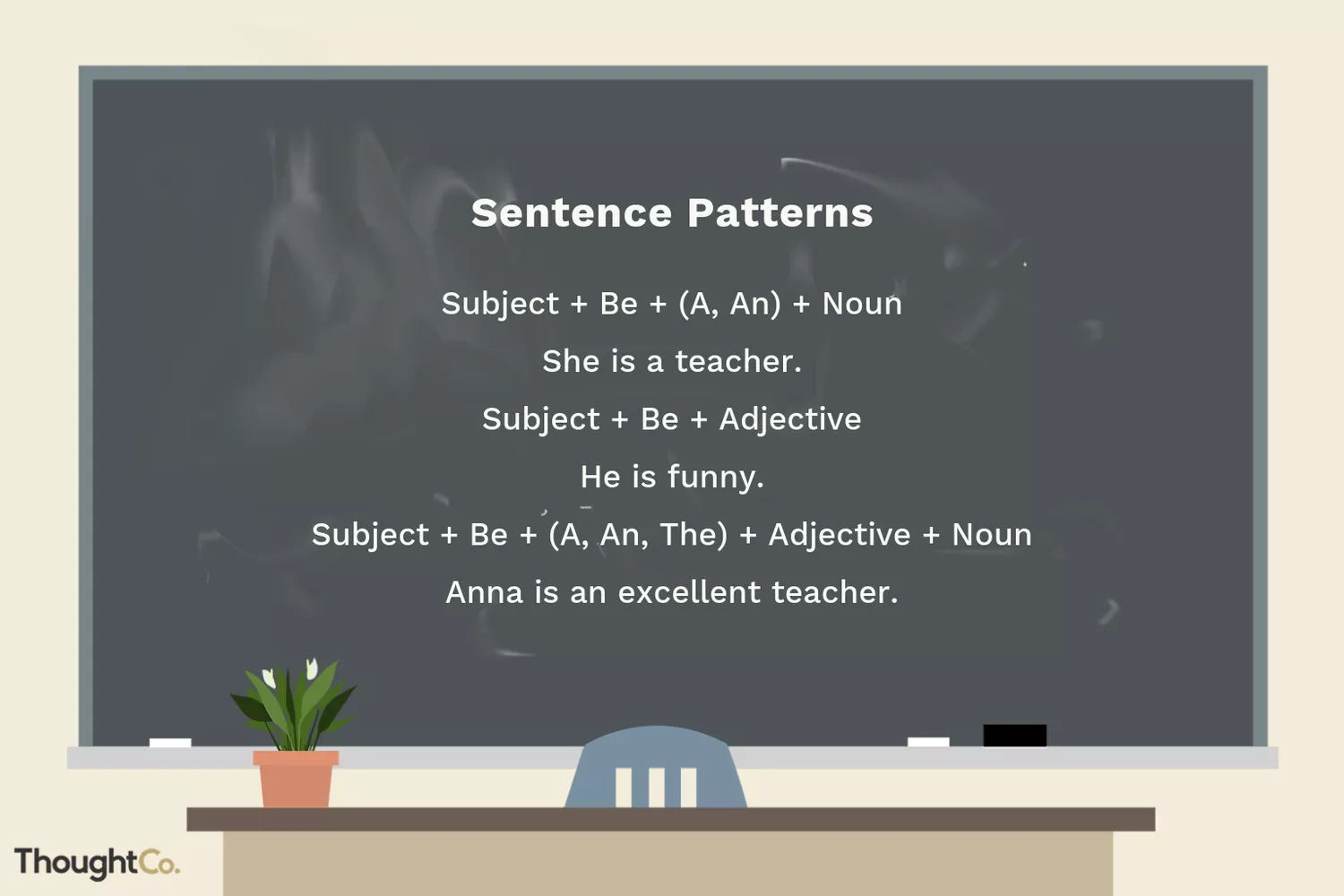S + V + (a, an, the) + (adj) + (N) + (Prep P)